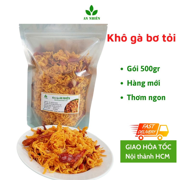 - Khô gà bơ tỏi với thành phần: thịt ức gà tươi lấy từ gà sạch, tỏi ớt được sấy giòn thơm, ăn cùng với khô gà cực kì thơm ngon, các gia vị vừa ăn