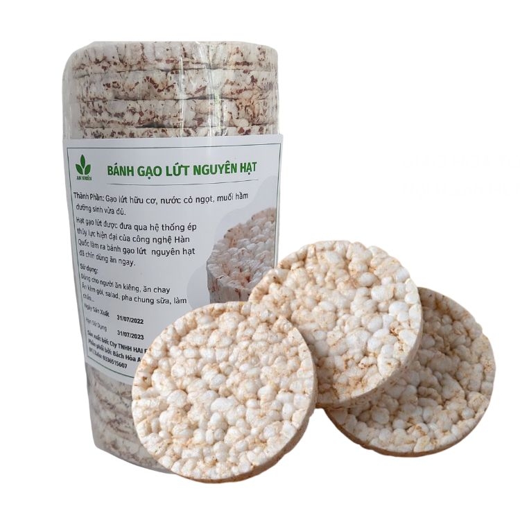 Bánh gạo lứt không đường, giảm cân được sản xuất bằng các hạt gạo lứt được đưa qua hệ thống ép thủy lực hiện đại của công nghệ Hàn Quốc làm ra bánh gạo lứt nguyên hạt đã chín ăn ngay.