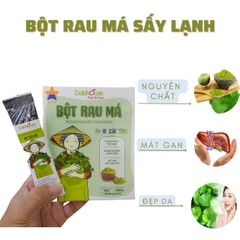 Bột rau má là sản phẩm được nghiền siêu mịn từ lá rau má hữu cơ sản xuất bằng công nghệ sấy lạnh Nhật Bản đạt tiêu chuẩn VSATTP Việt Nam.
