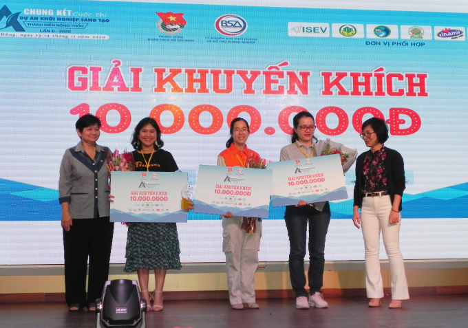 Giải khuyến khích thuộc về ba dự án là Mật thốt nốt Palmania (Châu Ngọc Dịu – An Giang), Phát triển cây gia vị Bạc hà & các sản phẩm chế biến từ Bạc hà (nhóm Bùi Thị Duyên – Thái Bình) và Túi biết thở – Bao bì bảo quản thực phẩm của Trần Thị Diễm My (TP.HCM). Mỗi giải trị giá 10 triệu đồng.