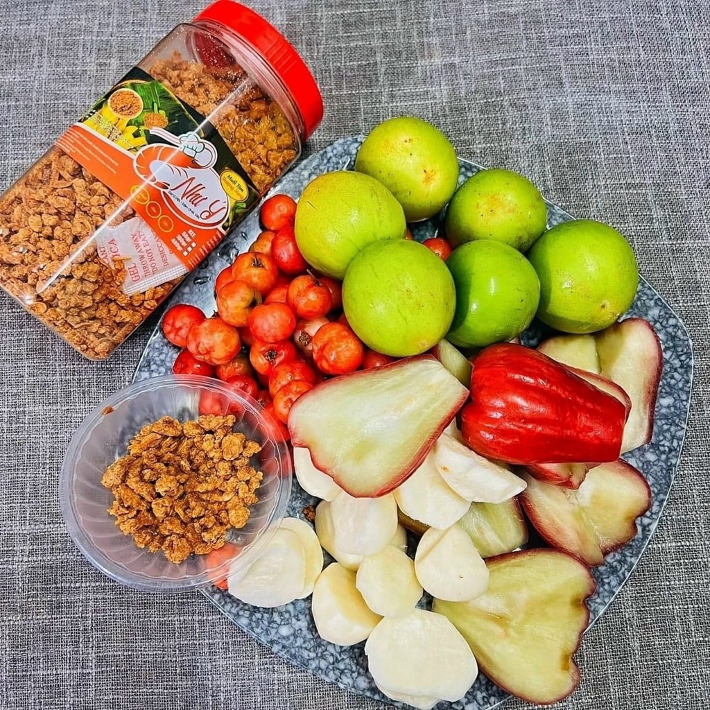 Một trong những công dụng quan trọng nhất của muối tôm Như Ý là làm nổi bật hương vị của món ăn. Hãy thử tưởng tượng khi bạn chấm một miếng xoài chua giòn trong muối tôm cay xè, vị tươi mát của trái cây hòa quyện cùng với hương thơm đậm đà của tôm khô và vị mặn của muối, tạo nên một trải nghiệm vị giác khó quên. Không chỉ kết hợp với trái cây, muối tôm cũng có thể làm nổi bật hương vị của các món nướng, từ gà, vịt đến cá, làm cho món ăn trở nên hấp dẫn hơn bao giờ hết.