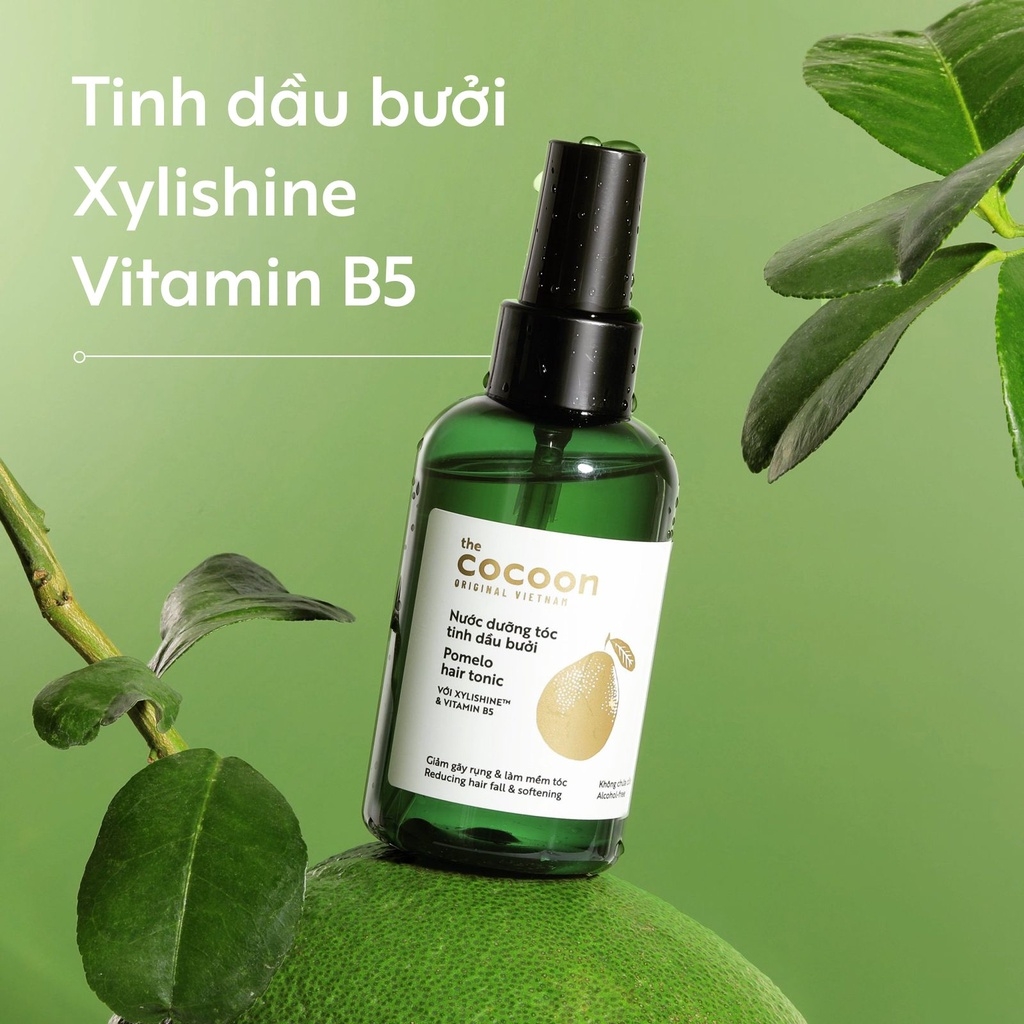 Nước xịt dưỡng tóc Cocoon với tinh dầu bưởi nguyên chất từ vỏ bưởi, kết hợp với hoạt chất Xylishine (chiết xuất từ gỗ và tảo nâu Pelvetia Canaliculata) và Vitamin B5 (Panthenol), nước xịt dưỡng tóc Cocoon giúp mọc tóc giảm gãy rụng và khô xơ, cung cấp dưỡng chất giúp tóc luôn suôn mượt, mềm mại.