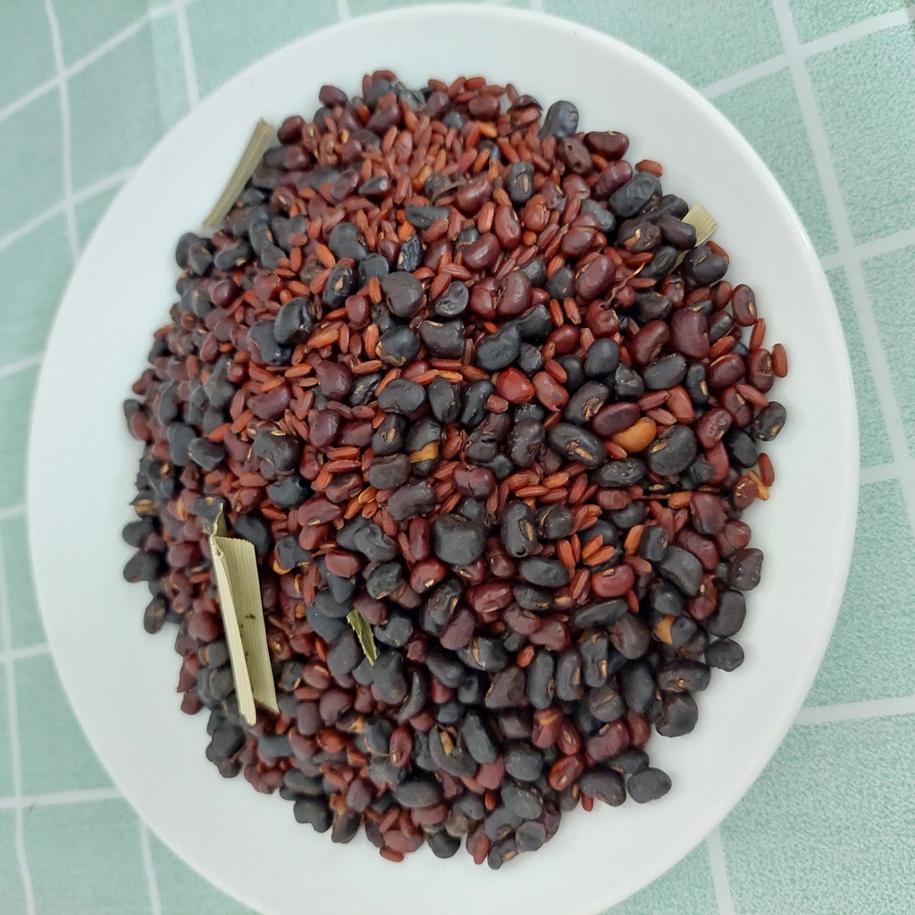 gạo lứt đỏ, đậu đen xanh lòng, đậu đỏ hạt nhỏ (xích tiểu đậu) đã rang sẵn.